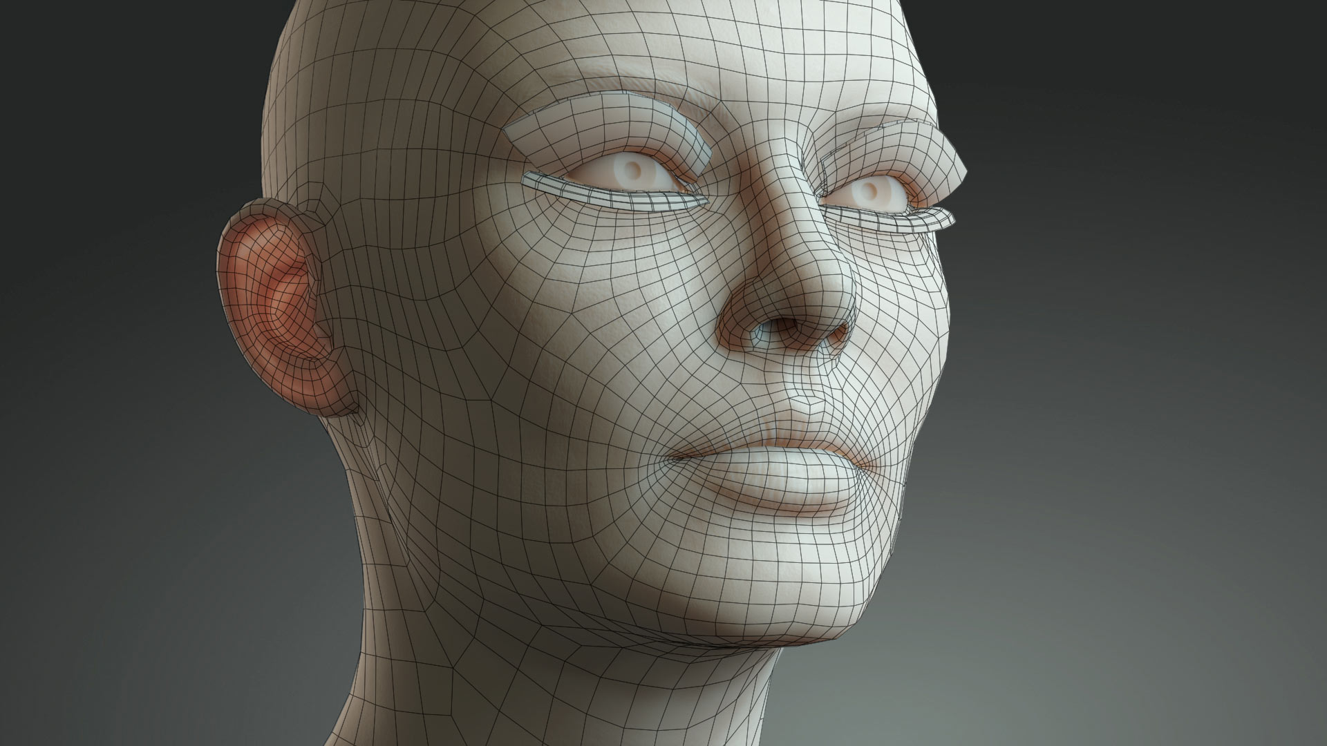 • The eyes are equipped with animation-friendly features, including dedicated meshes to simulate eye moisture and realistic cast shadows.
