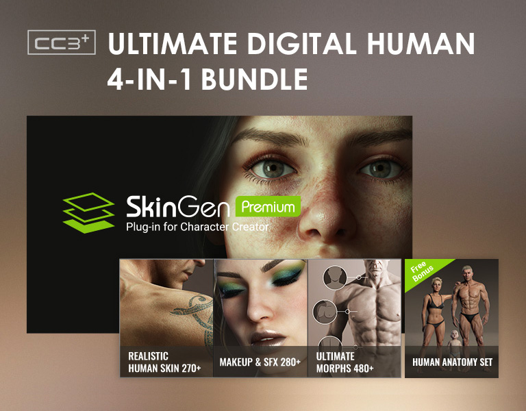 Harness the full power of Character Creator 5 with ActorMIXER PRO, 40+ scanned assets, and HD skins. Perfect every detail with the HD Ultimate Morphs Pack, plus the $990 HD Human Anatomy Set as an exclusive bonus. Explore More >