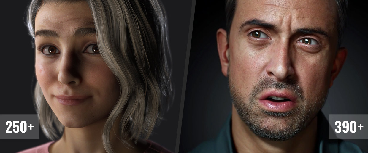Four levels of Expression Profiles are designed to support a broad spectrum of applications—from motion capture, interactive XR, and games to digital humans and high-end visual productions. Manual >