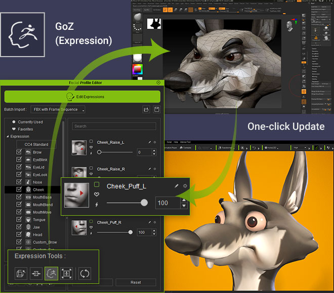 For ZBrush designers, CC provides GoZ round trip workflow for the freedom of ZBrush expression sculpting, and easy updating expression back to CC.