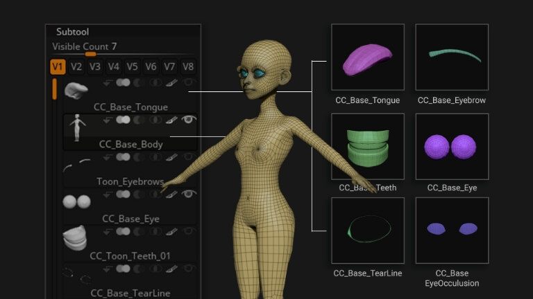 All body parts are consolidated into one single mesh, making it convenient to load and edit in any 3D application. Character morph generation for CC characters is also optimized by this flexible design.