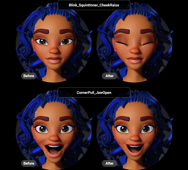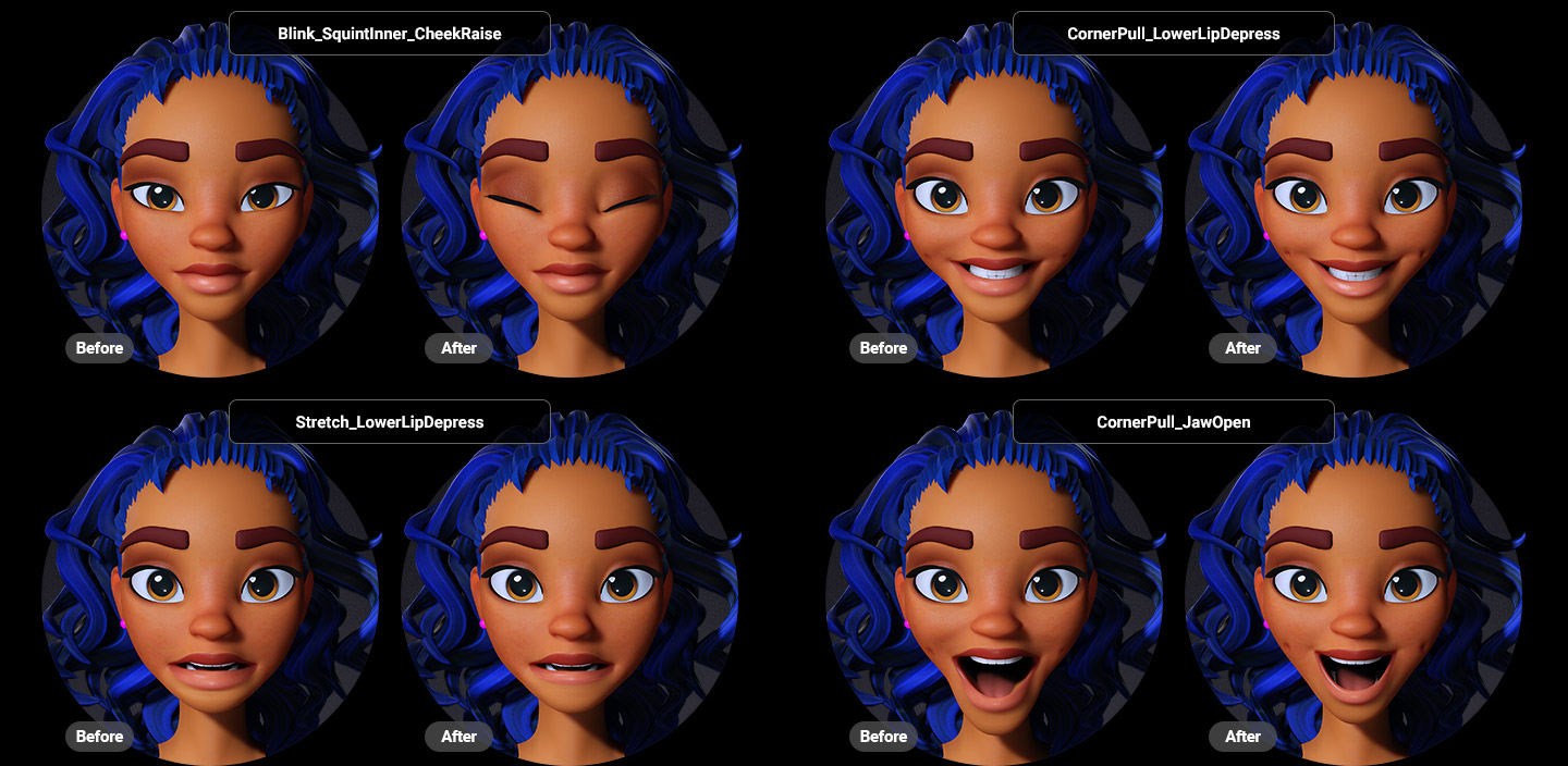 Compatible with iPhone, AccuFACE, and MetaHuman Animator, CC5 delivers non-linear facial animation using advanced curve-based controls. It realistically simulates complex muscle movements, including sticky lips, elastic puckers, and brows that drop and furrow during a frown. Manual
