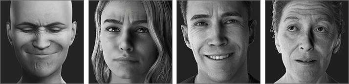 A total of 300+ expression morphs arranged by facial feature categories can be found under Modify - Morphs - Head - Expressions. In the Expression Profile Editor, designers can customize facial expressions directly using those modeling sliders. Learn More