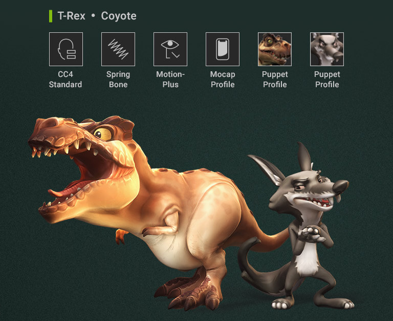*Facial mocap profiles for Kevin, Camila, Coyote, T-REX will be installed with Motion LIVE - LIVE FACE