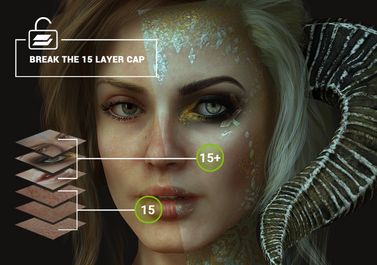 If your computer has sufficient memory, then SkinGen Premium allows you to break the 15 layer editing limitation for non-destructive editing freedom. Please check Recommended System Requirements