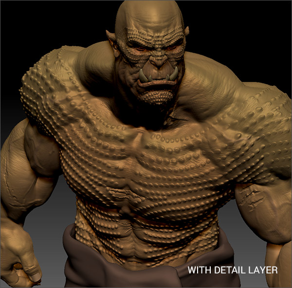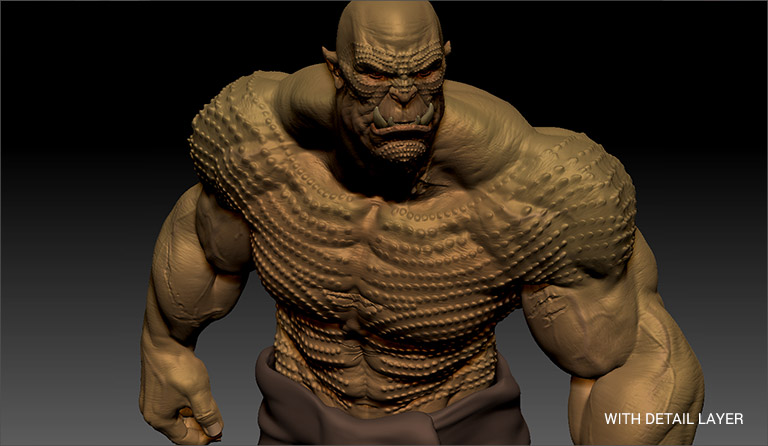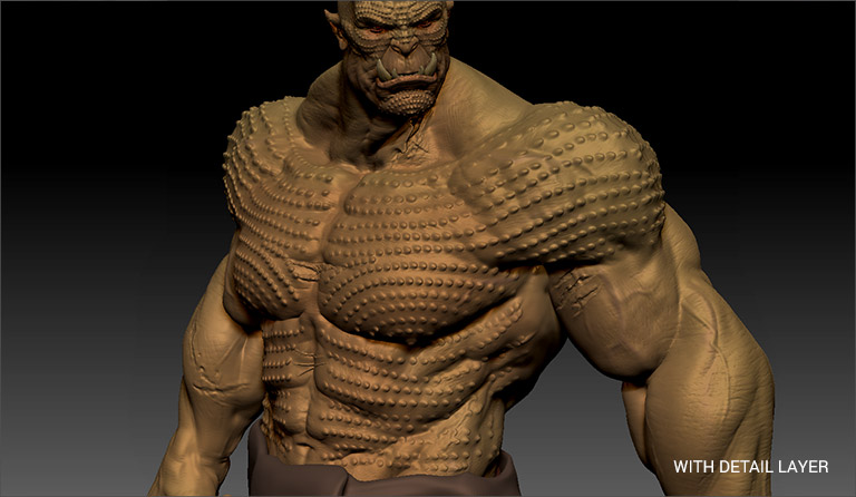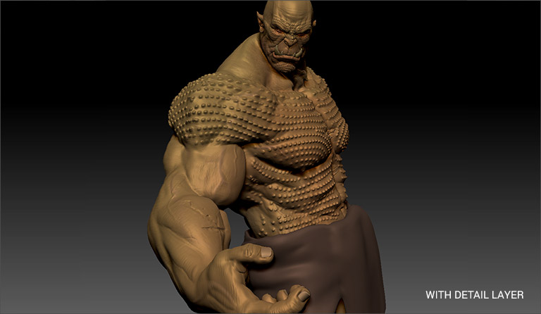 Utilize Detail Layers to embellish characters. These layered effects can be applied to all poses managed by ZBrush Pose Tools, providing a versatile and efficient way to enhance the character's appearance.