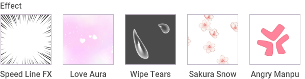 Immerse yourself in anime aesthetics with playful manpu effects for romance, sadness, anger, and more. From sparkles and sweat drops to hearts, these dynamic effects are built from full-framed image sequences, delivering buttery-smooth visuals that sync perfectly with your animation triggers. Give your character's expressions that extra oomph they deserve.