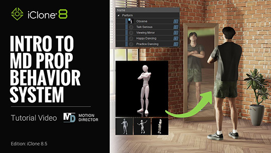 Motion Director is a powerful and intuitive real-time motion creation tool within iClone that allows you to move and command your character models just like in a video game, and allows for live interaction with dedicated MD props in your production environment.