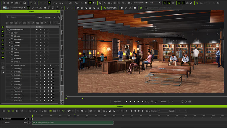 Create realistic 3D crowds with expressions, accessories, and diverse animations in iClone, then batch transfer to Maya with identical placement for final rendering. iClone Crowd Sim >