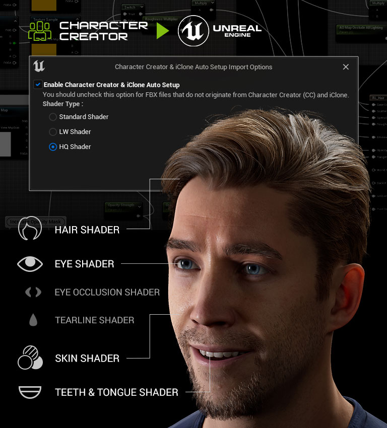 Character Creator, iClone and ActorCore provide quality characters, animations, and assets for game developers. However, importing characters to Unreal Engine requires heavy and complex character setups, which includes creating and assigning shader blueprints for each individual part of the character. With the help of the Reallusion Auto Setup tool, you can save enormous amount of the time invested in your project, making the process of Digital Human shader assignment and characterization for Unreal Engine fully automated.