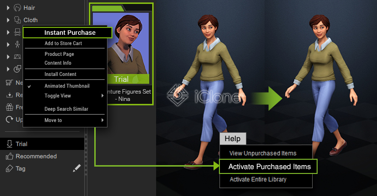 Use Smart Search in the Smart Content Manager to find and download trial content from the Reallusion Marketplace. When you're ready, add it to your cart and remove the watermark with a quick purchase. Online Manual