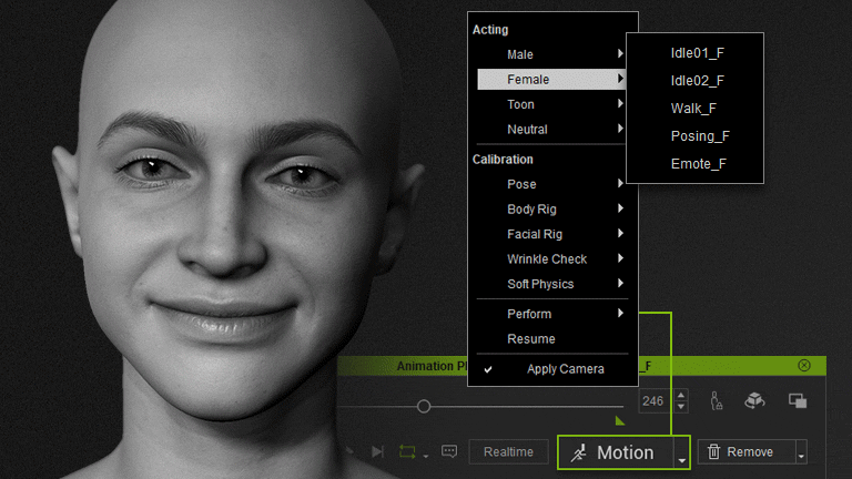 Experience the efficiency of browsing motions with animated thumbnails. Preview the motion by hovering over the thumbnail or activate Animated Thumbnail to play automatically.