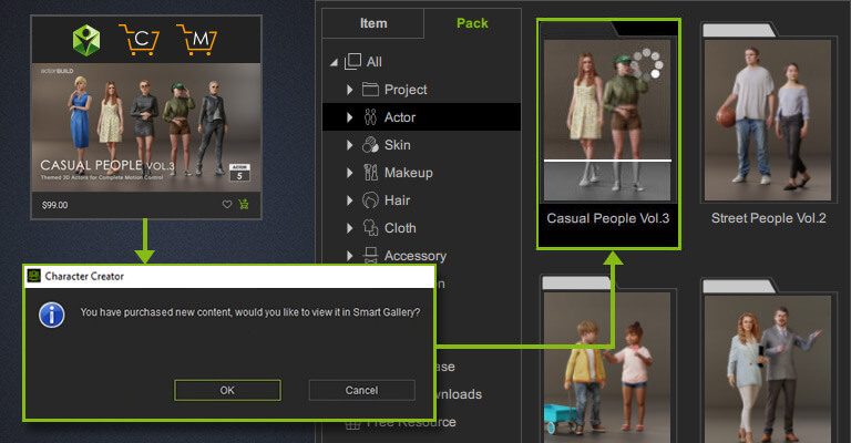 Newly purchased content from the Content Store, ActorCore, Marketplace or Smart Search will automatically sync with the Smart Content Manager, allowing direct download and installation within the application. Online Manual