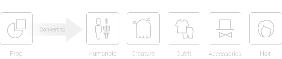 Never underestimate the power of a 3D prop, it can be turned into a character, a piece of cloth, an accessory, or even hair. Users can separate mesh nodes of a prop to make it animatable, edit prop shape, change the materials, or make props real-time friendly with polygon reduction.