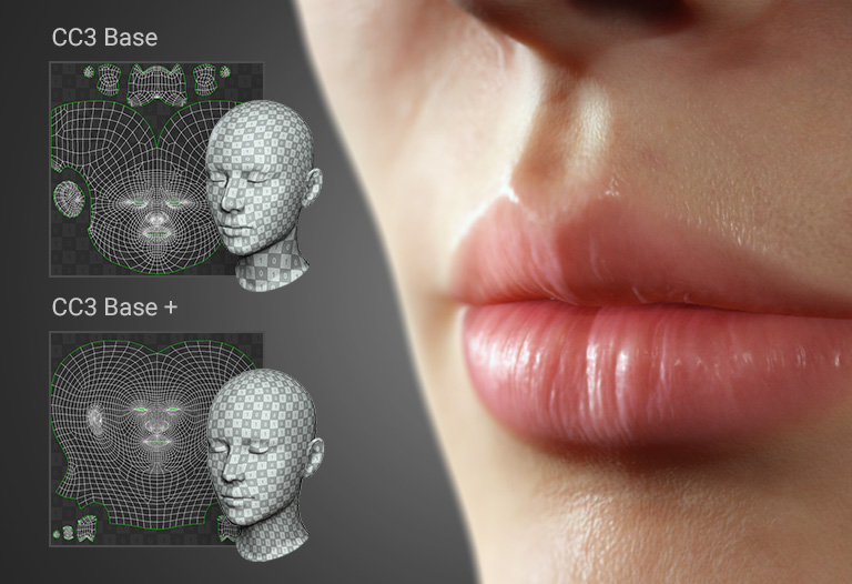 • With more supporting geometry, the CC3+ base model is able to effectively emulate unique eye shapes, including fine wrinkles and other defining features.