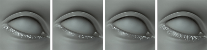 The Smart Hair Shader brings delicate, natural-looking eyelashes to life. Its many options provide full control over color variations over clumps and root to tip transitions. Additional specularity adds realism, allowing lashes to catch light naturally in any environment.
