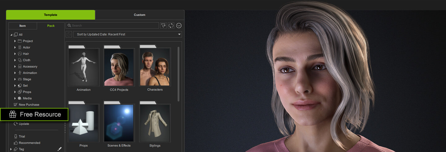 Experience different aspects of Character Creator's powerful features by testing out the included items. An extensive library of highly valuable CC4 projects, characters, outfits, hair, animations, morphs, light presets, etc. are ready for your download. >> Please go to Smart Content Manager - Pack view - Free Resource section to download.