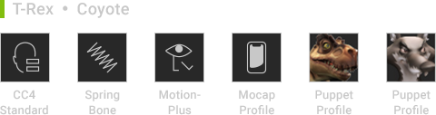 *Facial mocap profiles for Kevin, Camila, Coyote, T-REX will be installed with Motion LIVE - LIVE FACE