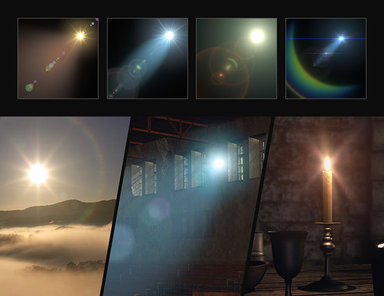 Enhance character renders with an optical and cinematic feeling. Try the sample lens effects made for outdoor, indoor, dramatic, and sci-fi scenarios. Learn More From Lens Flare 200+