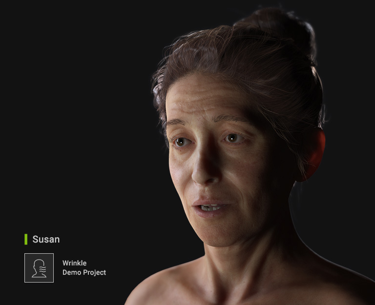 As a fully-functional 3D character, Susan is perfect for facial mocap, puppetry, lip sync, and body animation. We licensed Susan's original scan model from TexturingXYZ and projected it onto a CC3+ character using Reallusion's revolutionary Mesh-to-CC Technology, resulting in a stunningly realistic virtual character.