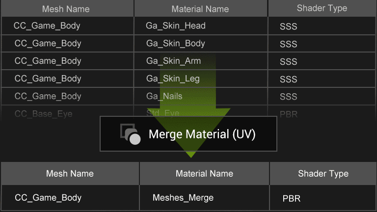 Used for individual mesh optimization, reduce the polygon count while keeping the mesh structure and material numbers.