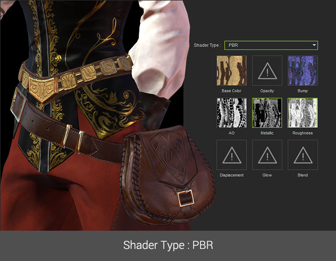 Character Creator with visuals for industry standard PBR shaders allows users to import PBR textures made with 3D paint tools like Substance Painter, 3D Coat, or