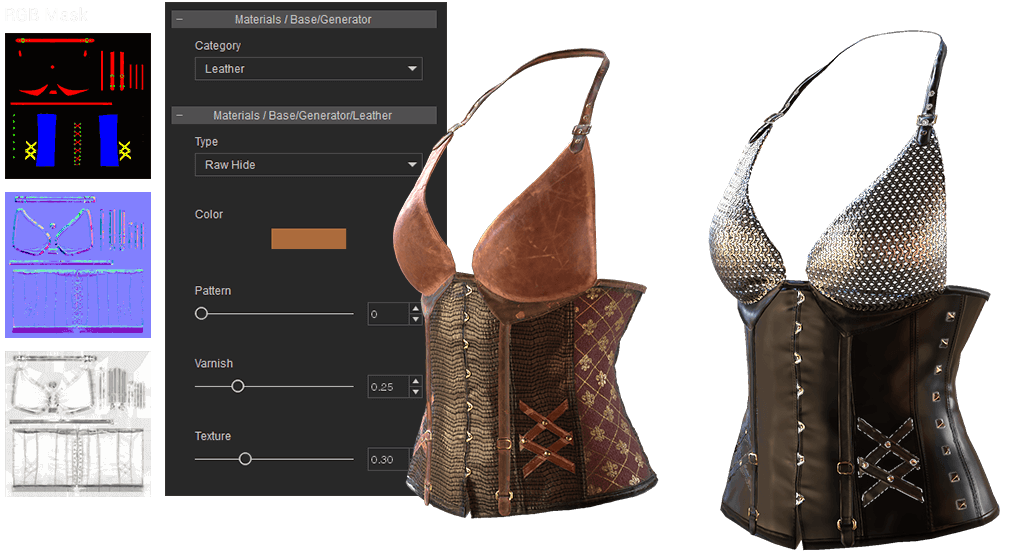 Choose from a range of base leather patterns like cow, crocodile leather, and others to recreate authentic leather works.