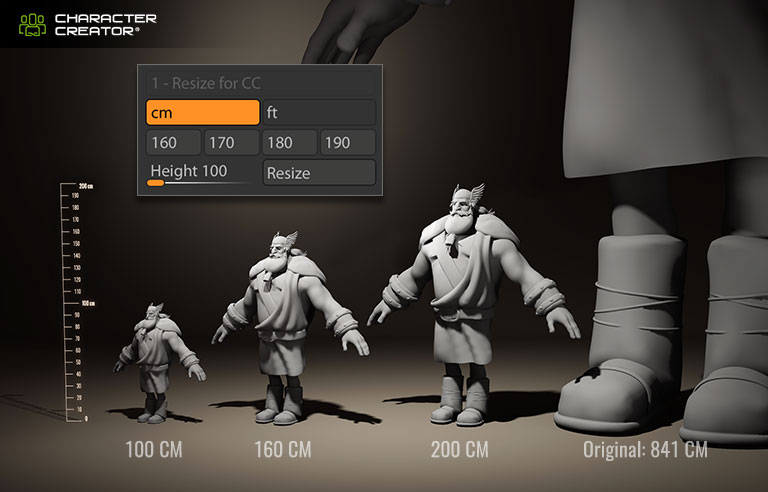 ZBrush models can be resized to match the scale conventions in Character Creator, a crucial initial step towards achieving accurate auto-rigging and posing compatibility between these two programs.