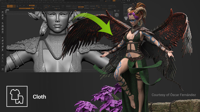 Rapidly prototype character models in Character Creator and export them to ZBrush for detailed sculpting and painting with subdivision support. Easily update poses, facial expressions, and cloth physics within Character Creator, then save these adjustments as pose layers for creating ultra-resolution character art, concept designs, or 3D prints.