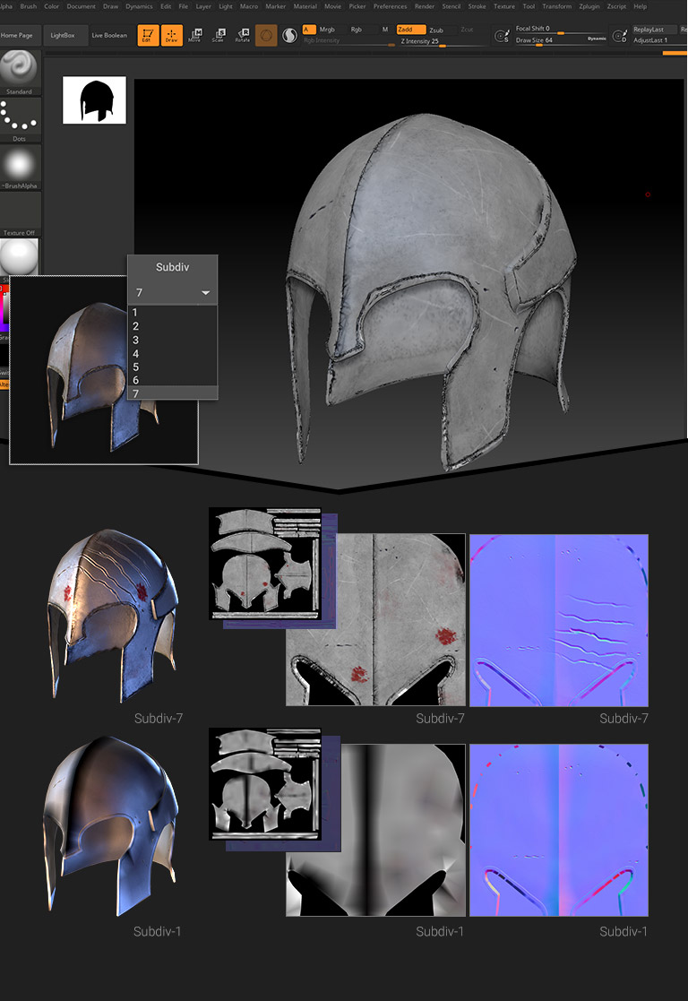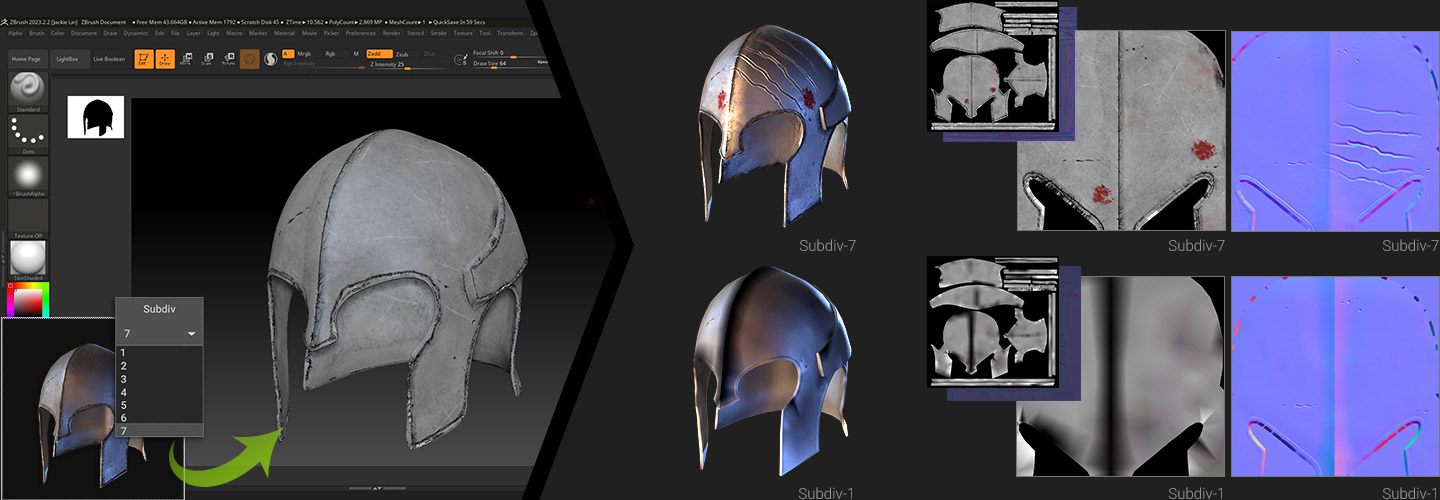 By elevating the GoZ subdivision level in Character Creator, you can achieve full texture resolution in ZBrush for enhanced mesh displacement and vertex color details. Consequently, the diffuse and normal maps baked in ZBrush and reintegrated into Character Creator will preserve high-fidelity texture detail with exquisite precision.