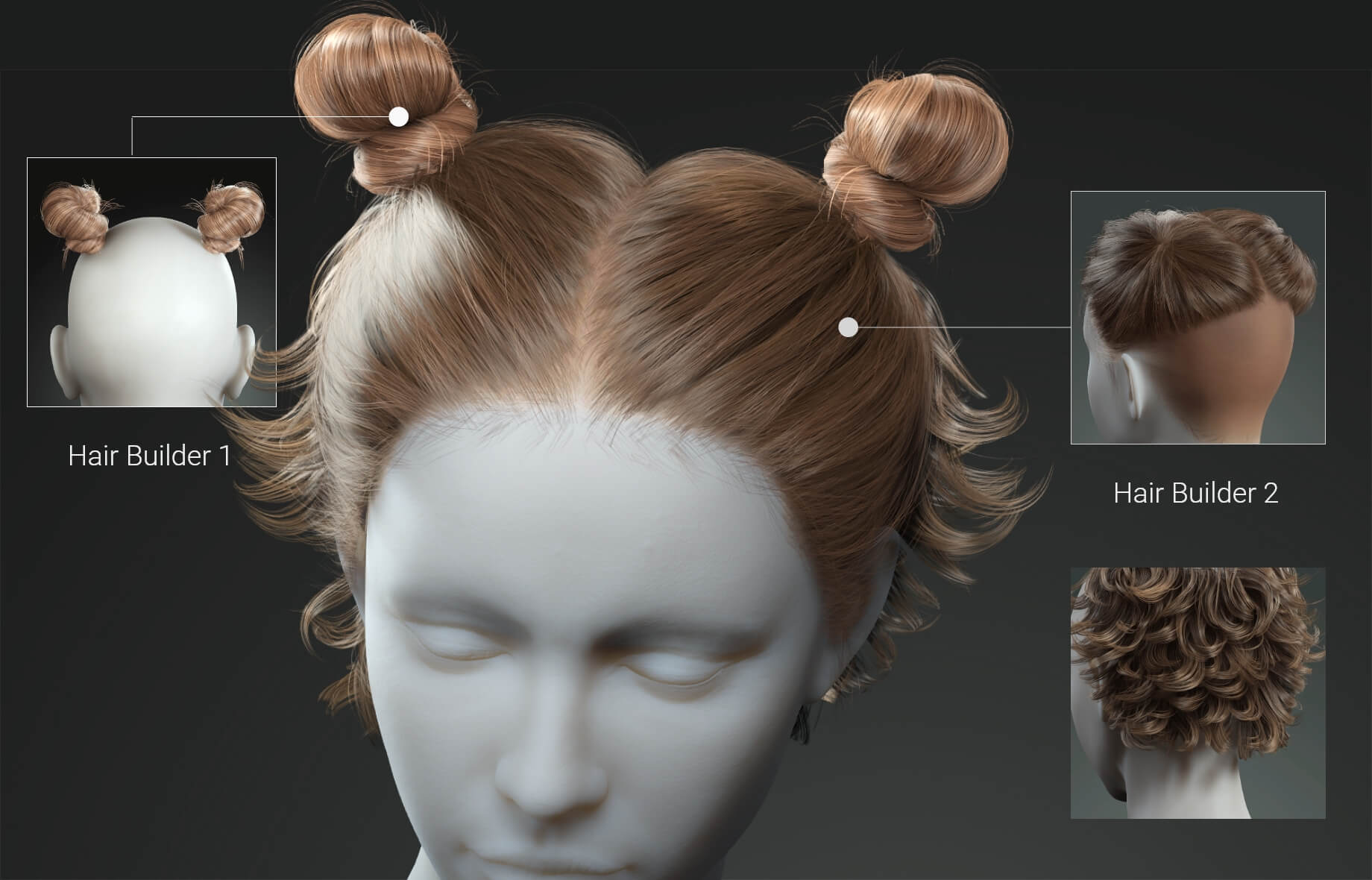 Empowered by Smart Hair technology, the Hair Builder 3 offers 20 pre-assembled hairstyles and 40 premium-quality hair elements. With distinctive hair flow and hair base connectors, users can intuitively evolve them to create unique fashions by simply adding bangs, braids, buns, and tails. Hair Builder 3 elements support not only morph options, dynamic physics, material presets but also hairline divisions; all with unprecedented freedom for 3D hair creation.