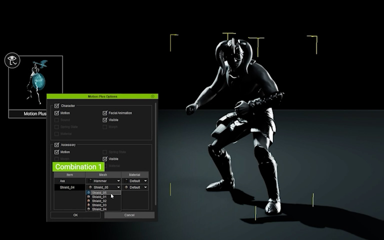 iClone Motion+ (Motion Plus) is an advanced animation format that integrates facial performances and metadata for attached accessories. It supports a variety of sophisticated animations, including cycling and skateboarding. Motion+ features automatic accessory attachment, model and material randomization, and precise motion and accessory alignment via motion editing.