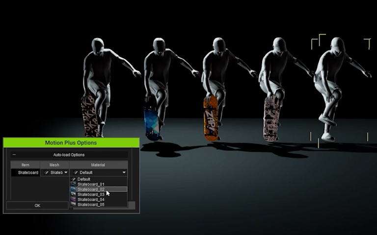 The iClone Smart Accessory system simplifies the entire process of editing motions and loading accessories. It is now possible to spawn a crowd of characters with unique accessories for each individual, automatically associate mocap motions with prop animations like skateboarding, or trigger MD performances for held objects.